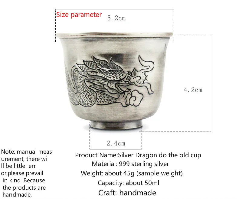 BEST High grade 999 Silver Products Hand made Tasting cup Kung Fu Teacup gift for family and friends kit