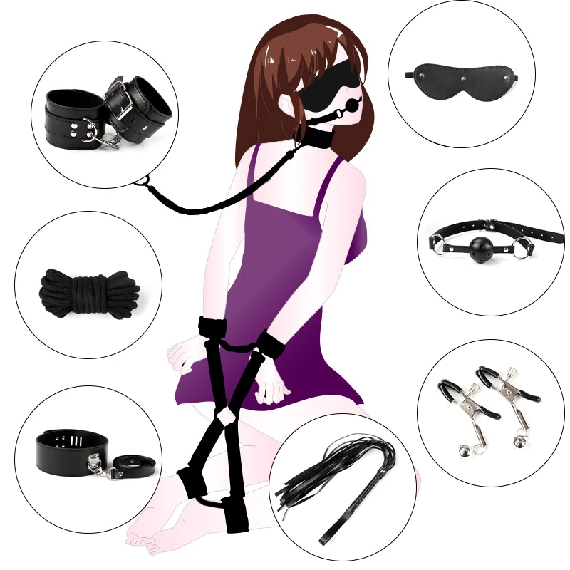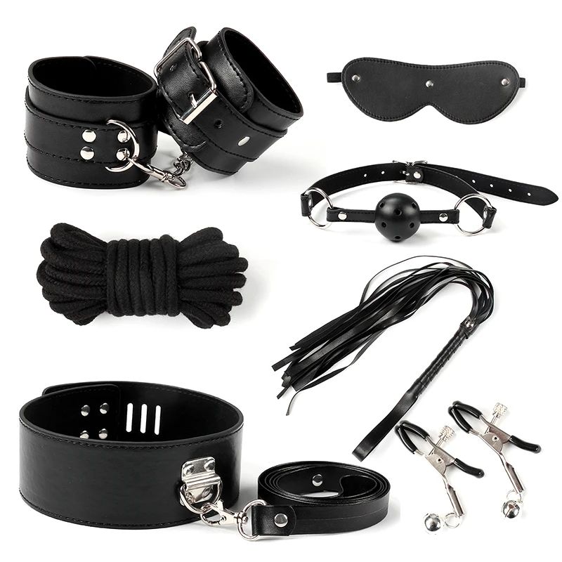 Hot Sale New leather BDSM ribbon plush 7 pieces bondage set restraints adult bdsm games bondage kit sex toys