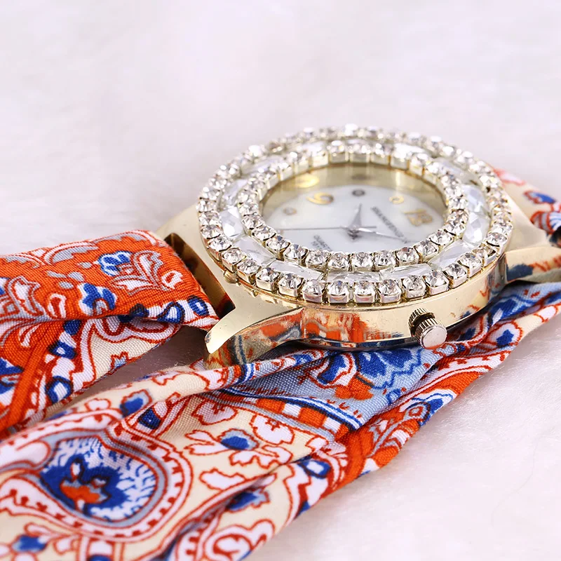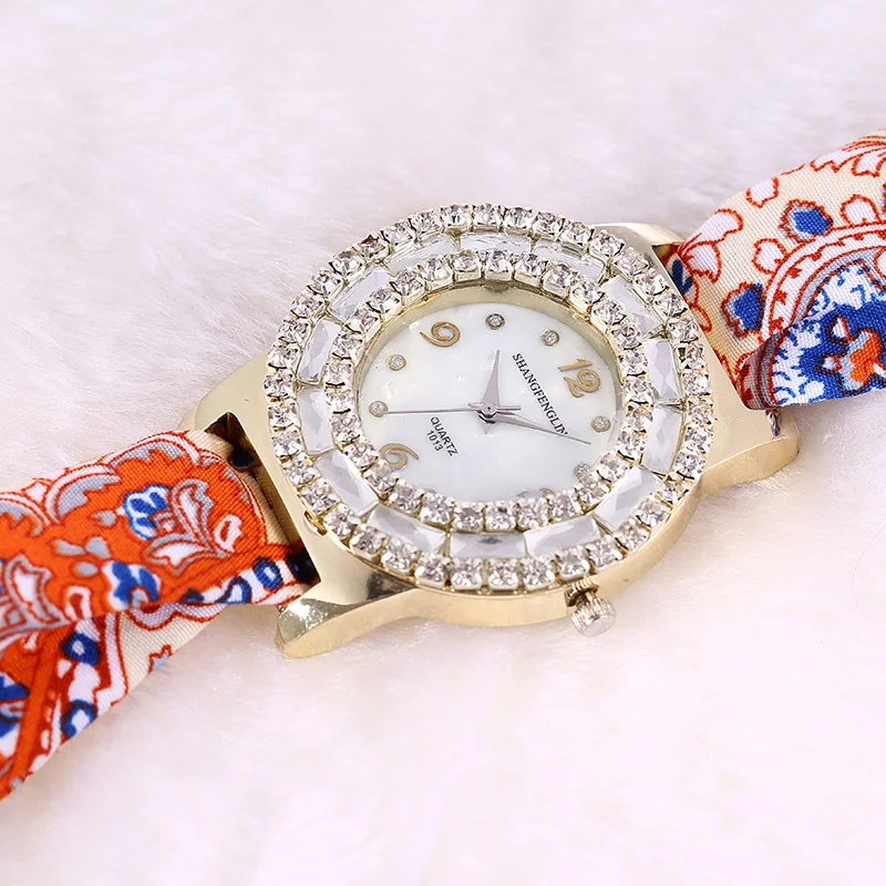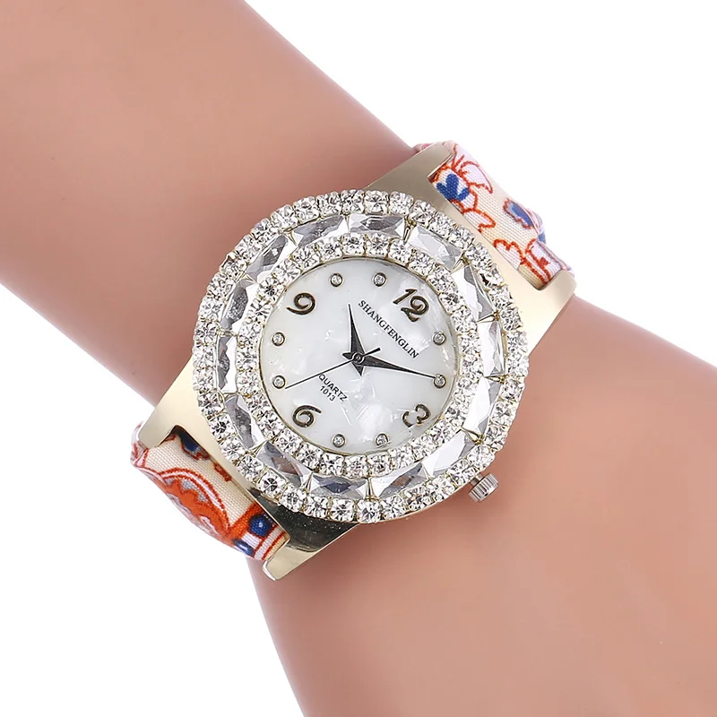 2019 New Products Fashion Luxury Rhinestone Crystal Ladies Watch Floral Fabric Watch Strap Casual W