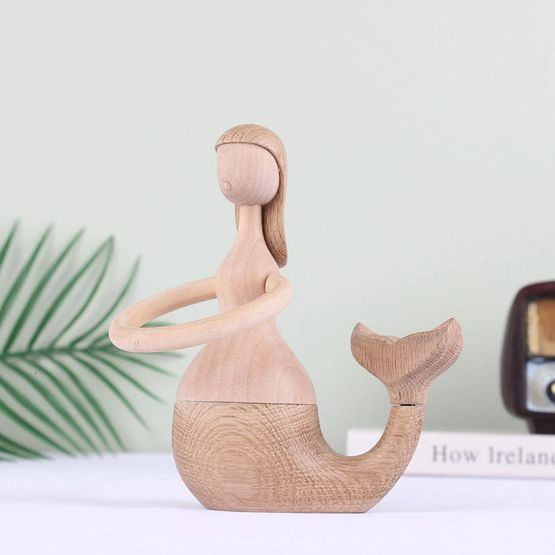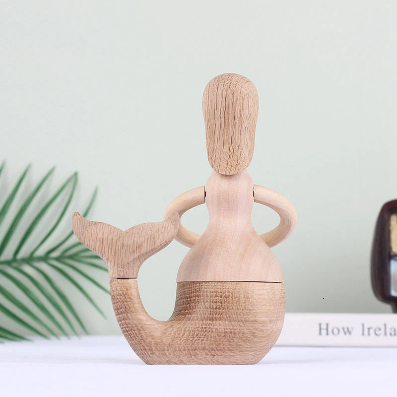 Nordic Denmark Solid Wood Mermaid Home Decorations Soft Wood Crafts Creative Gift Table Arrangement